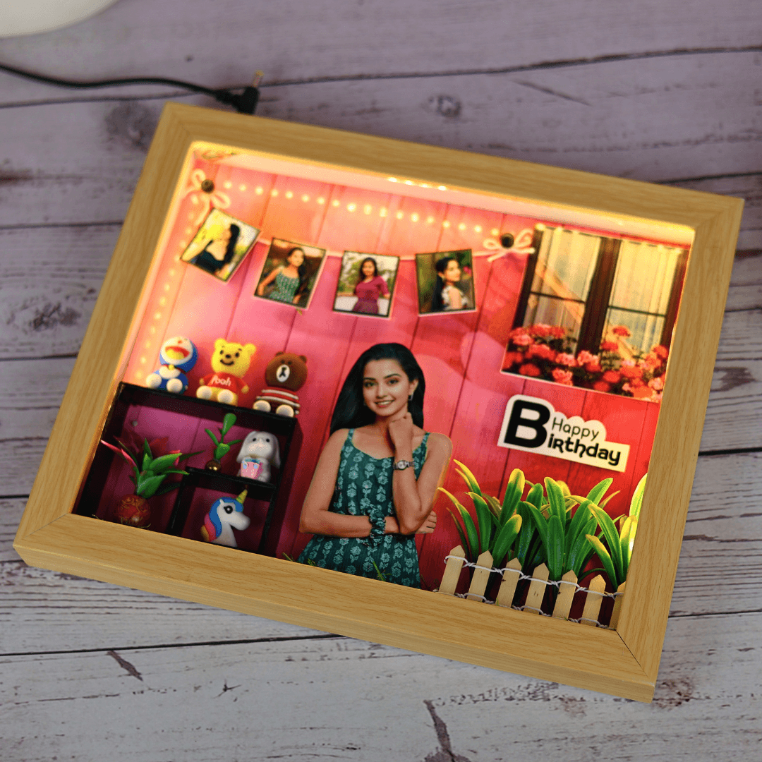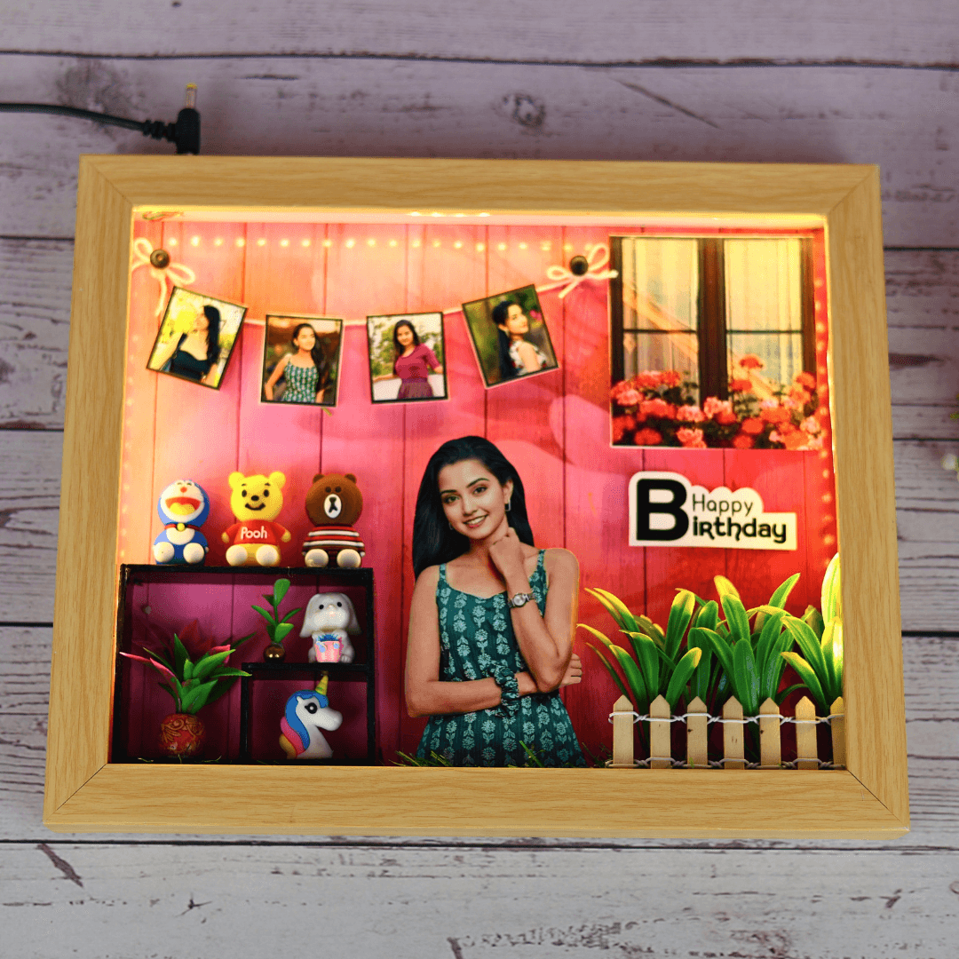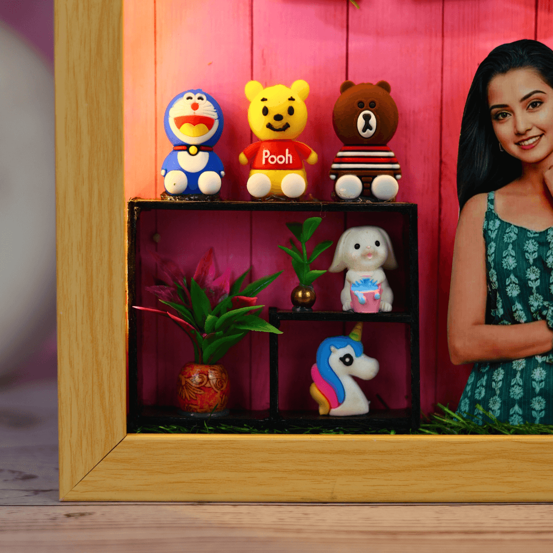 Add a unique touch to your home decor with a customized frame. This personalized photo frame gift features five photos to showcase your cherished memories in a whimsical and captivating way. Cute little miniatures add an extra layer of sweetness, making it a perfect keepsake.