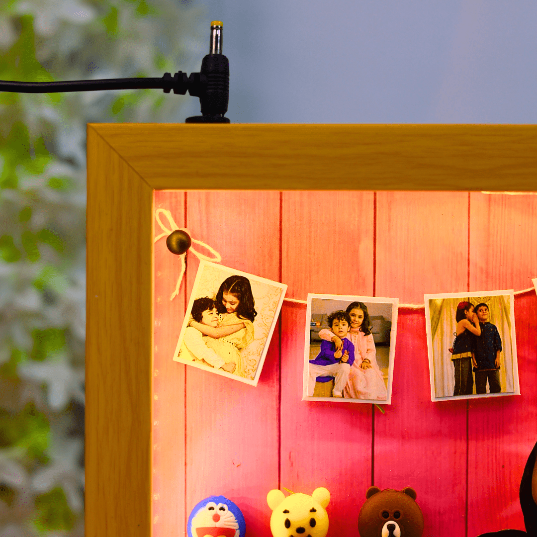 Looking for a unique Raksha Bandhan gift? Our Personalized LED Photo Frame makes memories shine! Customize it with one large and three small photos of your favorite sibling moments, beautifully illuminated by built-in LED lights. Crafted from high-quality MDF and Acrylic glass, this versatile frame can be displayed anywhere. Comes with a free adapter for instant glow. Give a gift that truly lights up their day!
