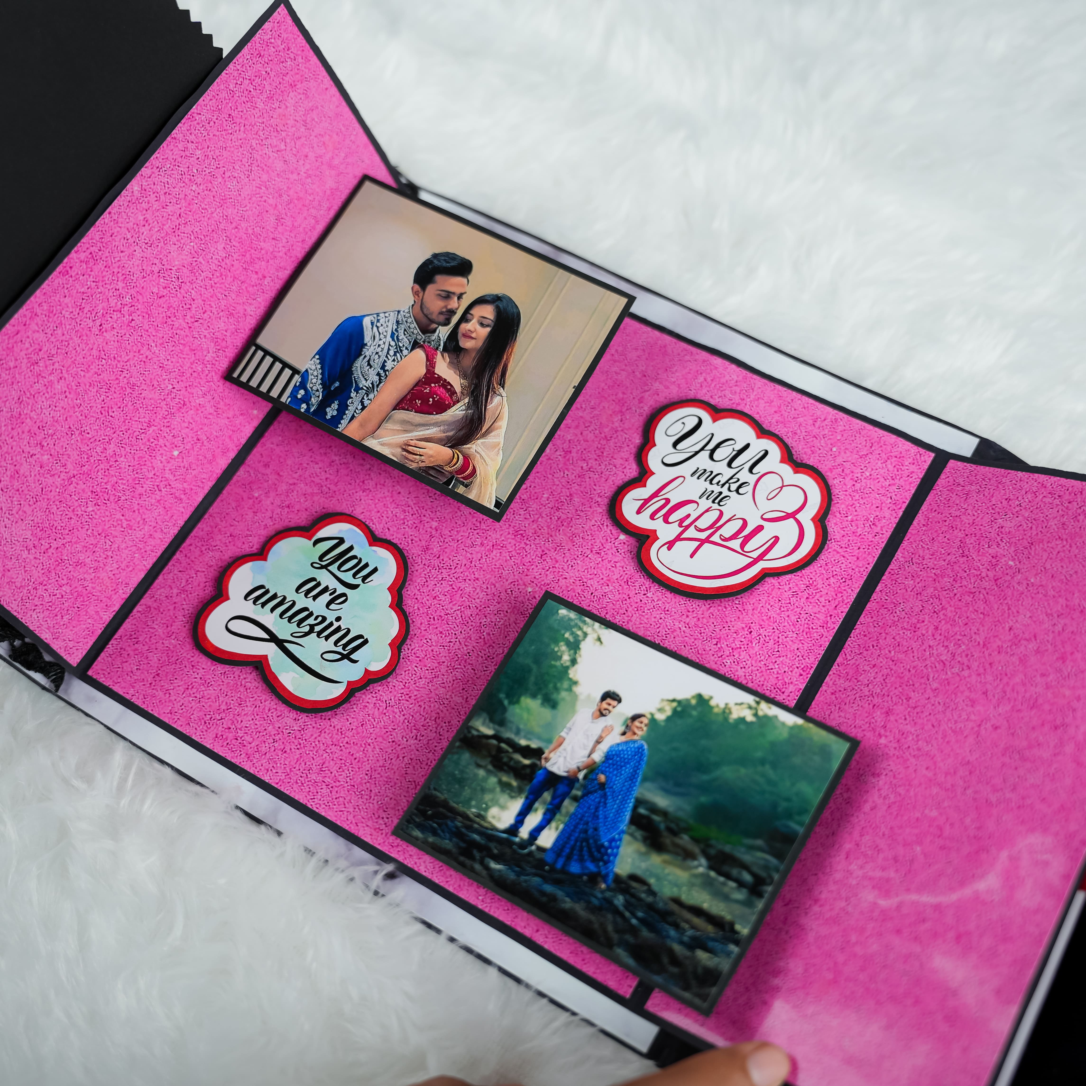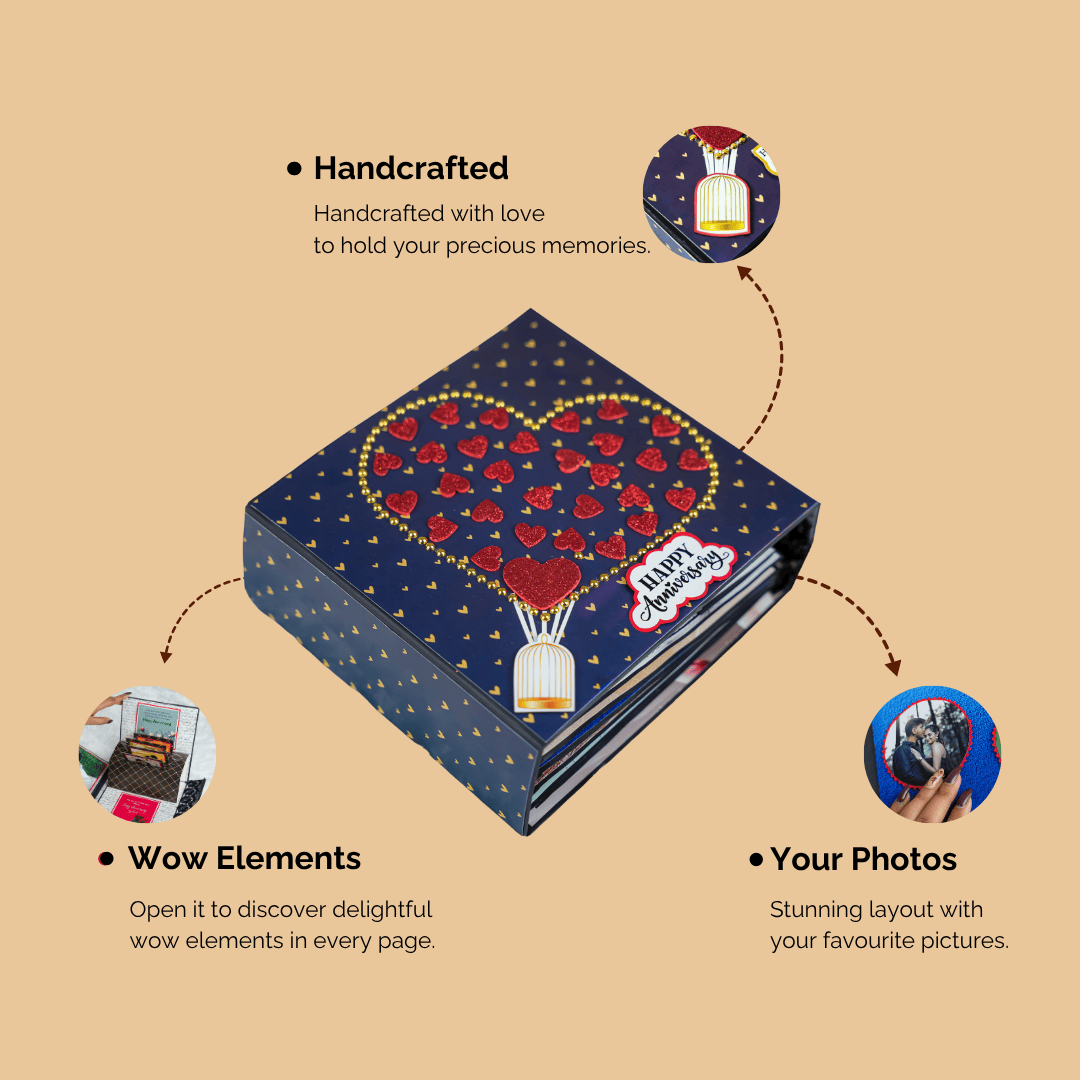 Celebrate special moments with our beautifully crafted album. It features 5 exquisitely designed pages filled with delightful "wow" elements to enhance your cherished memories. It can hold up to 25-35 photographs, providing ample space to capture your precious moments.