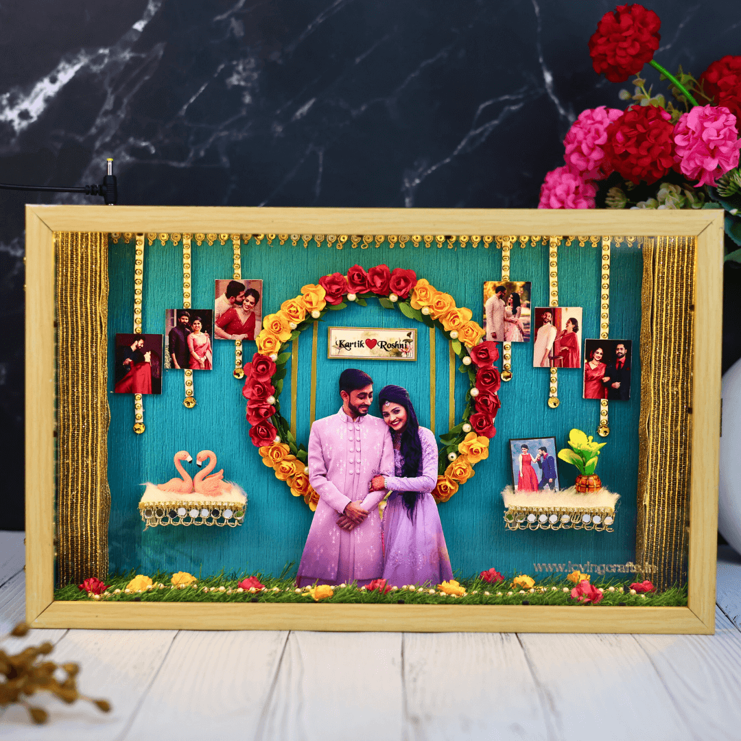 A thoughtful and meaningful gift for couples celebrating their wedding or anniversary. Adding flair to any room decor. And when illuminated with the included LED light connection, this frame exudes a warm and inviting glow that enhances its elegance. Plus, we've got you covered with a free adapter, making it easy for you to light up your frame and create a magical ambiance.