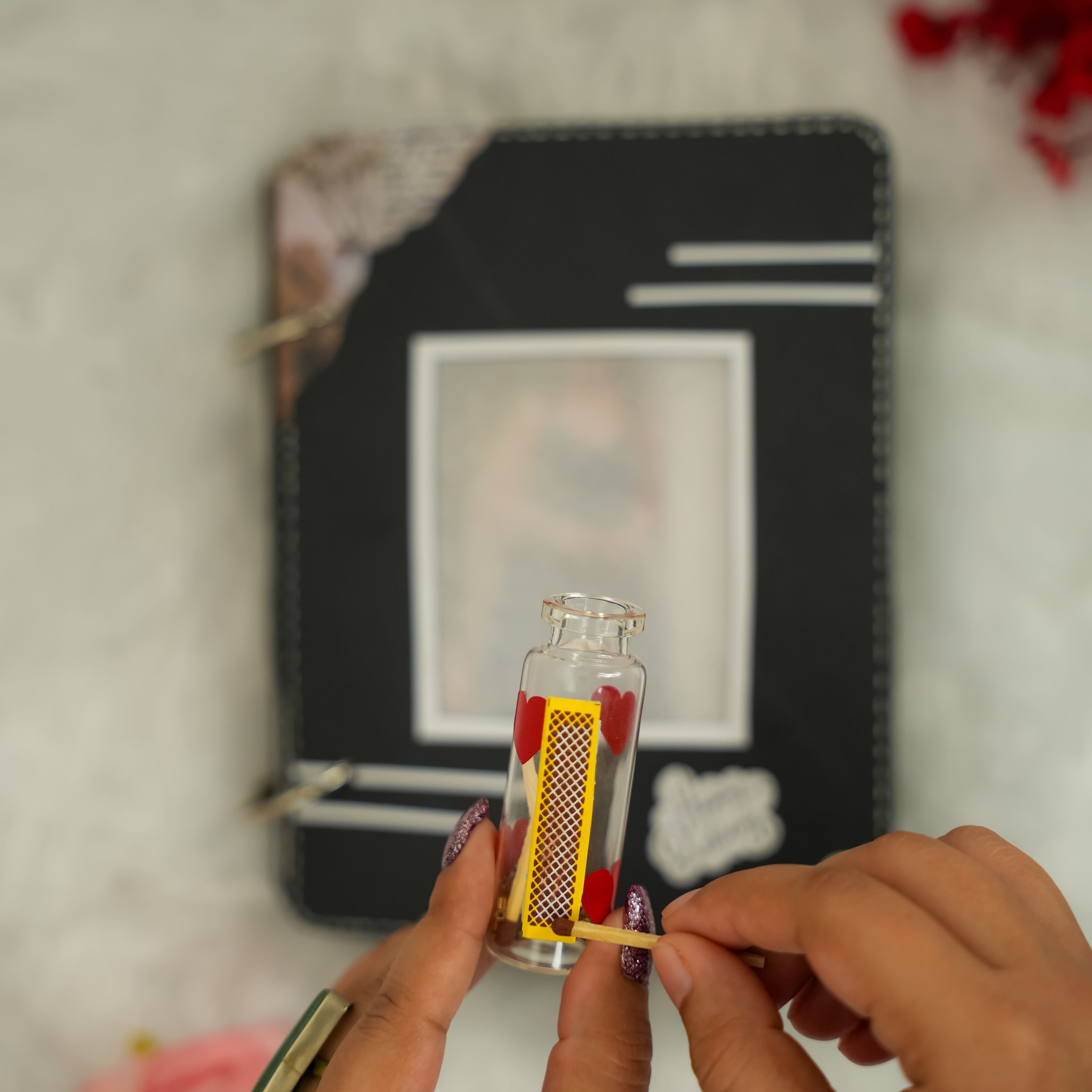 Create a moment of wonder this Mother's Day with our enchanting Magical Fire Album. This isn't just a photo album; it's an experience! The front page holds a delightful secret – the chosen front picture is revealed in a captivating display when gently lit. It's a truly magical way to unveil a cherished memory. Inside, this 7x7 inch album offers 11 pages to fill with your most treasured moments, accommodating up to 20 personalized photographs. Adorned with cute and charming elements throughout, it's a heartwarming keepsake she'll adore. To complete the magical reveal, each album comes with an adorable little bottle containing matchsticks, ready to light up those precious memories. Give the gift of surprise and sentiment with this extraordinary Mother's Day album.