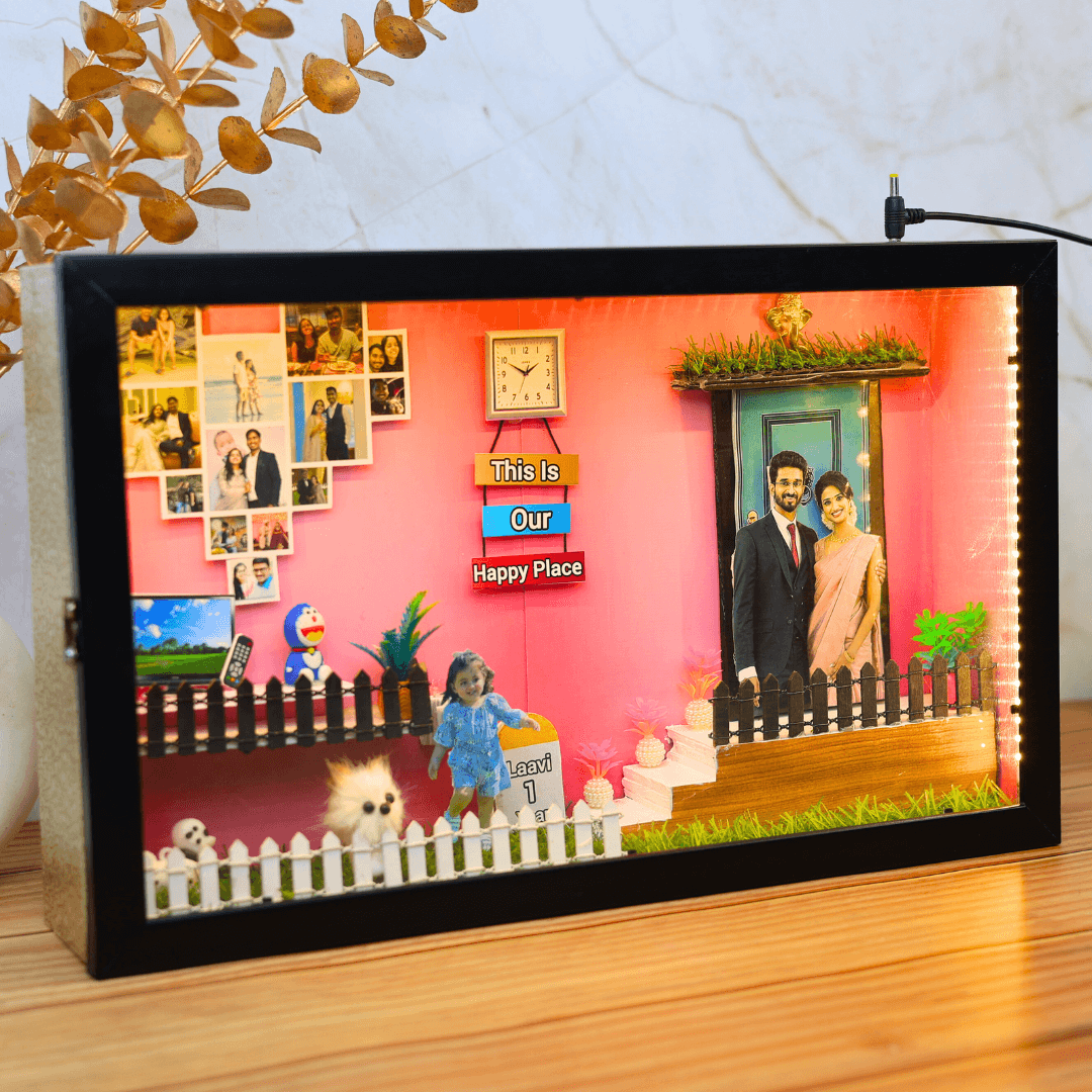 Celebrate Family Memories in a Heartfelt Way with Our Light-Up Miniature Frame! This charming miniature frame captures the essence of family life in a delightful display. Measuring 17" x 10", it offers a captivating scene brimming with personalized details.